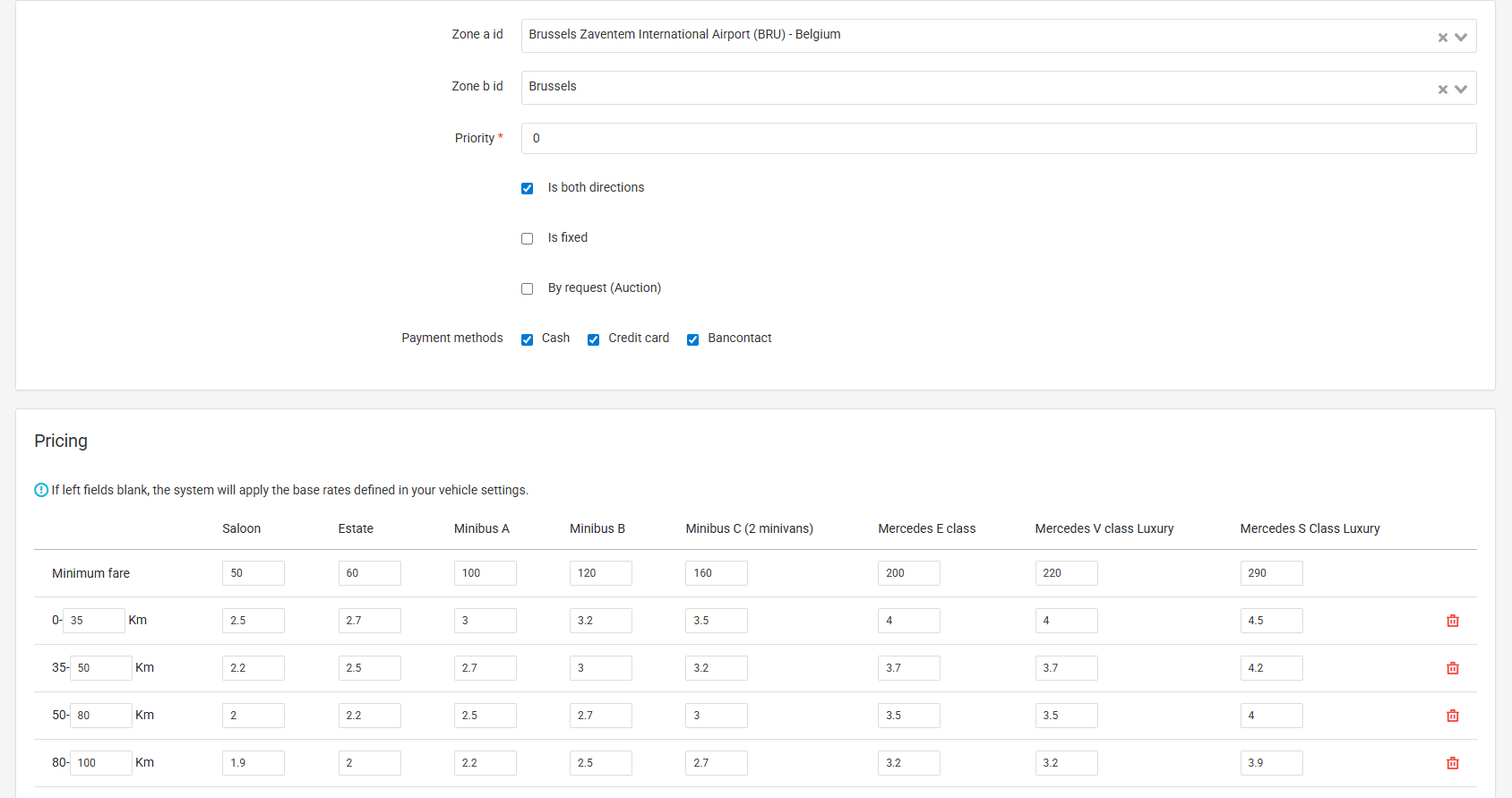 Instead of relying on static pricing, you can define dynamic rules based on trip distance, pickup and drop-off zones, time of day, and additional services.